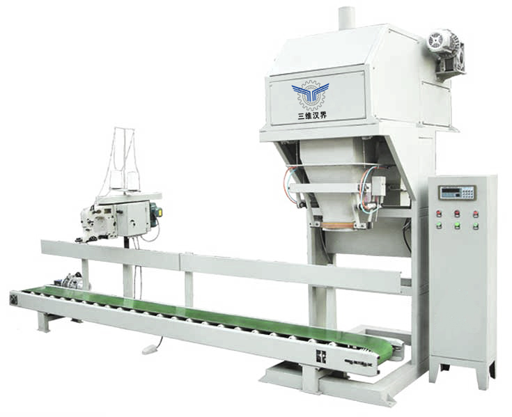 混合物料定量包装机该机需人工协助上袋、自动称量、夹袋、充填、自动输送、缝包;